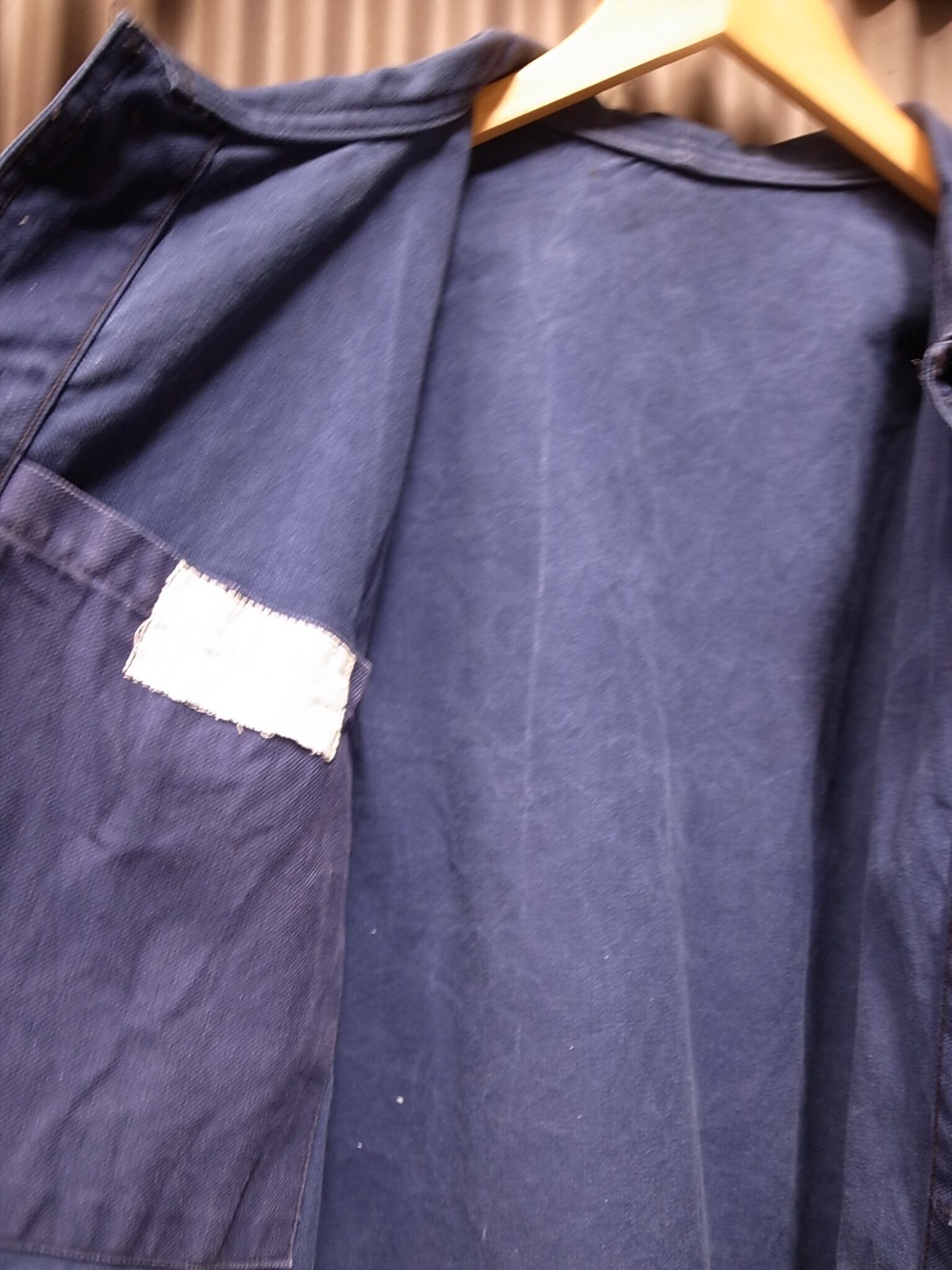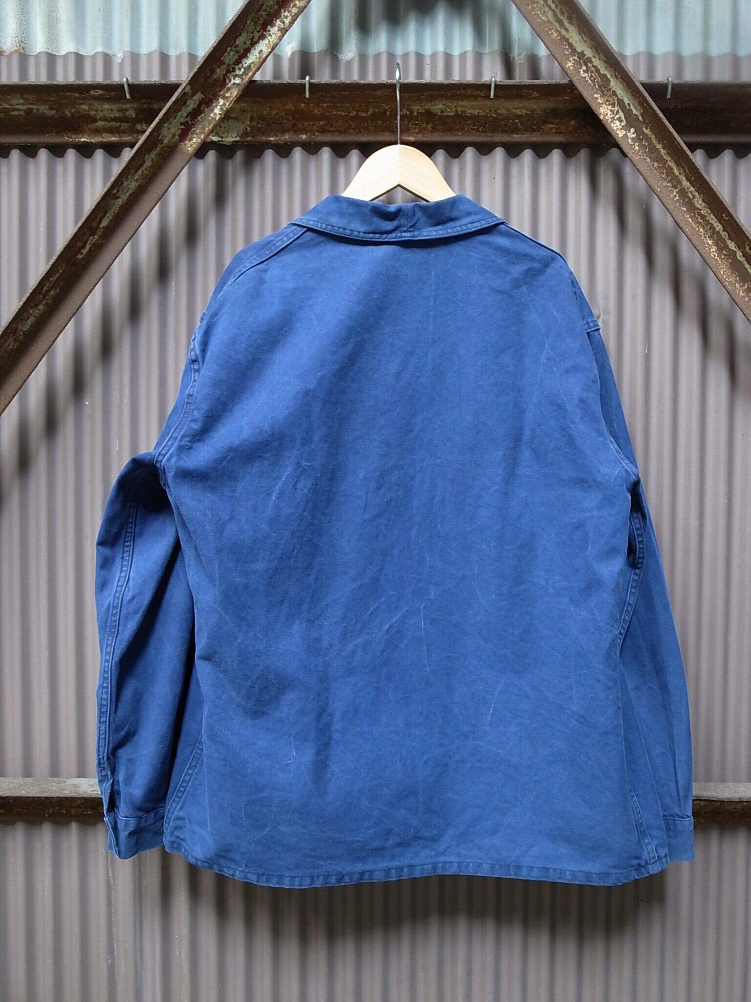 デッドストックから数回ウォッシュを重ねた一着で、深みあるコットンツイルの質感が際立ちます。