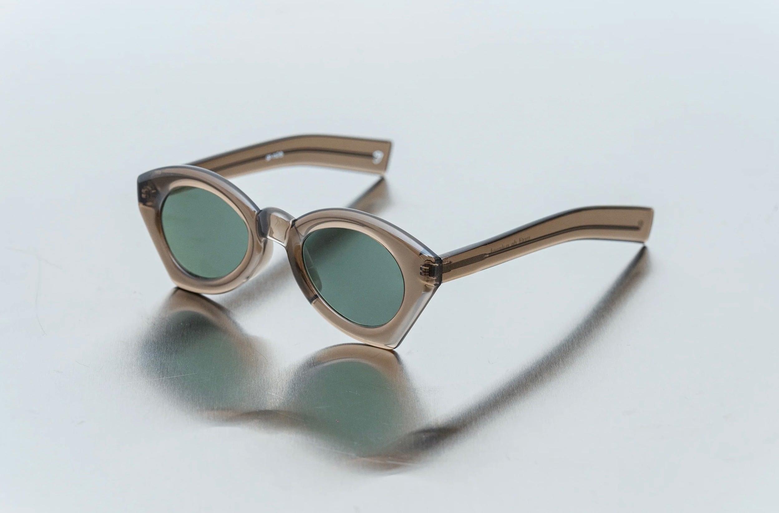 独特なカッティングを施したフロントと、力強く伸びるストレートテンプルが印象的な一本。